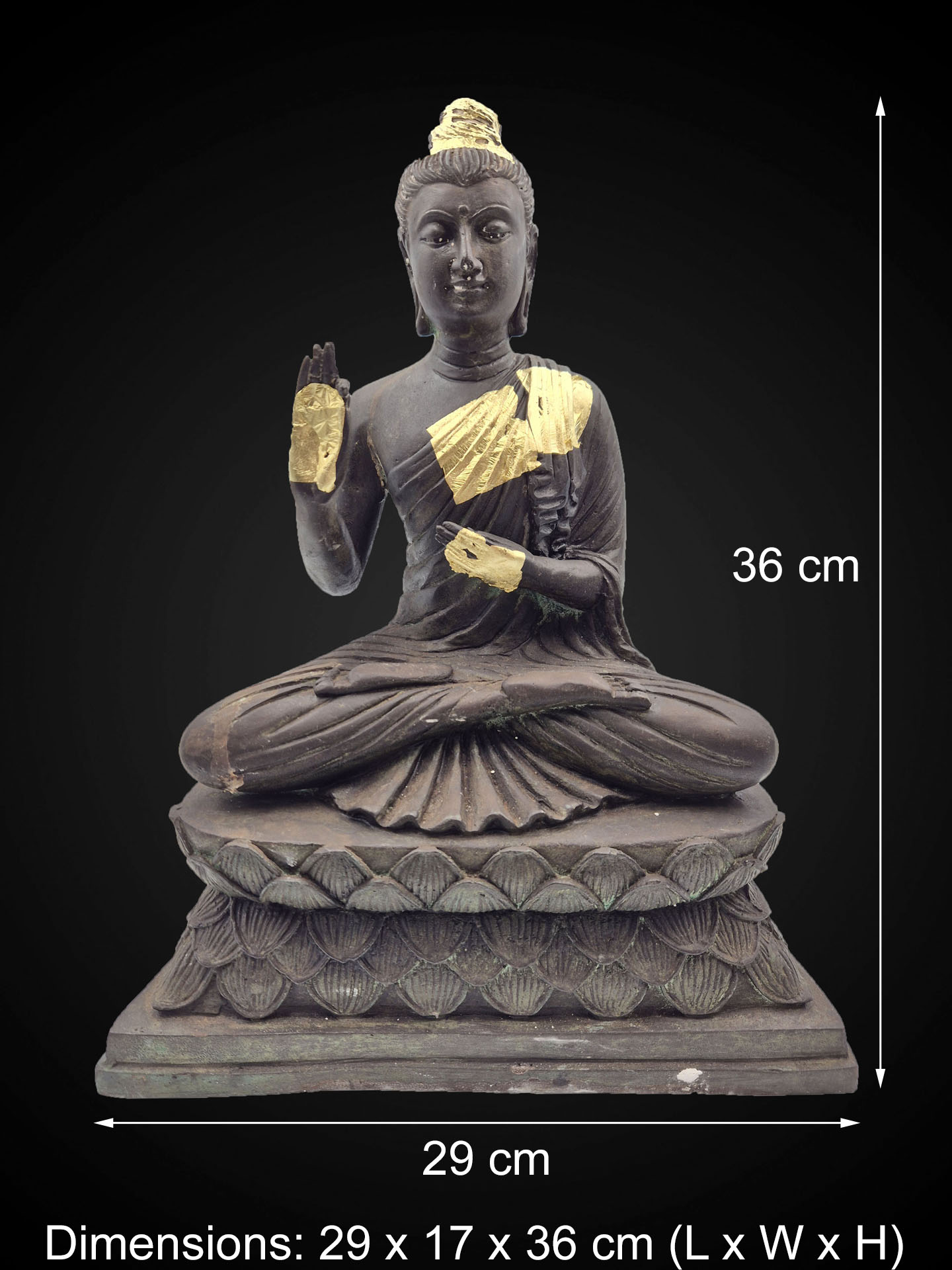 With a height of 36 cm, it offers a stable and dignified presence suitable for altars, meditation spaces, or curated interiors.