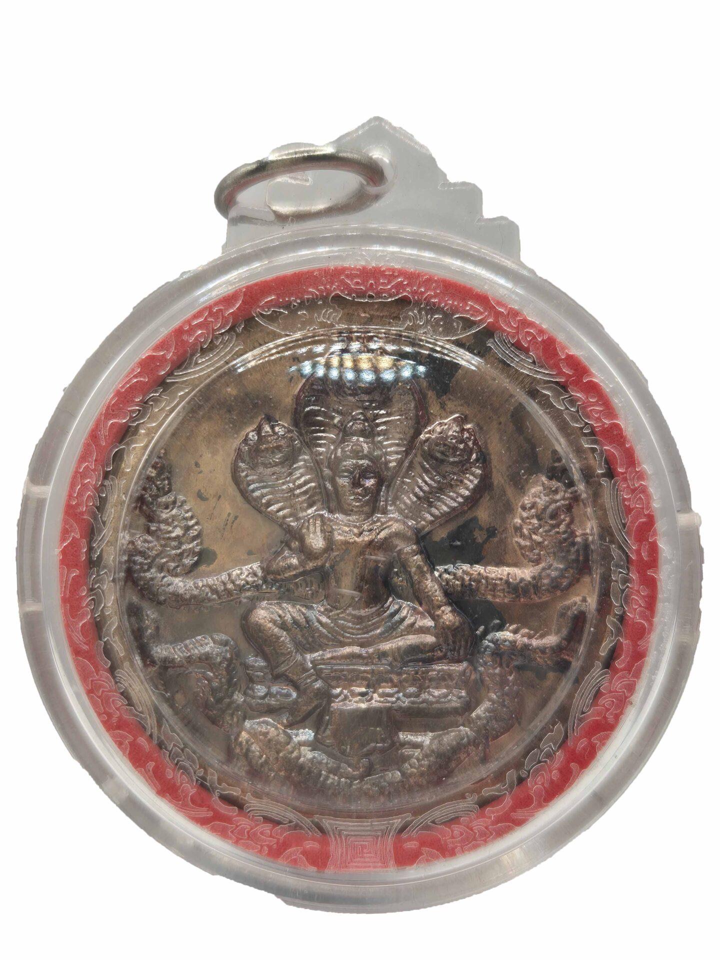Jatukam Ramathep amulet became extremely popular in the 2006-2007 period. The amulet is named after the two princes, Jatukam and Ramathep, from the Sri Vijaya kingdom. It is a round shape amulet with a 5cm diameter and usually with the image of a Hindu deity. The initial batch of amulets was made in 1987 by Khun Phantharak Rajjadej, a highly respected police Major General that died at the age of 108. The latter was given a Royal Cremation ceremony where the Thai King, Queen, and more than 200 thousand people patronage the funeral.