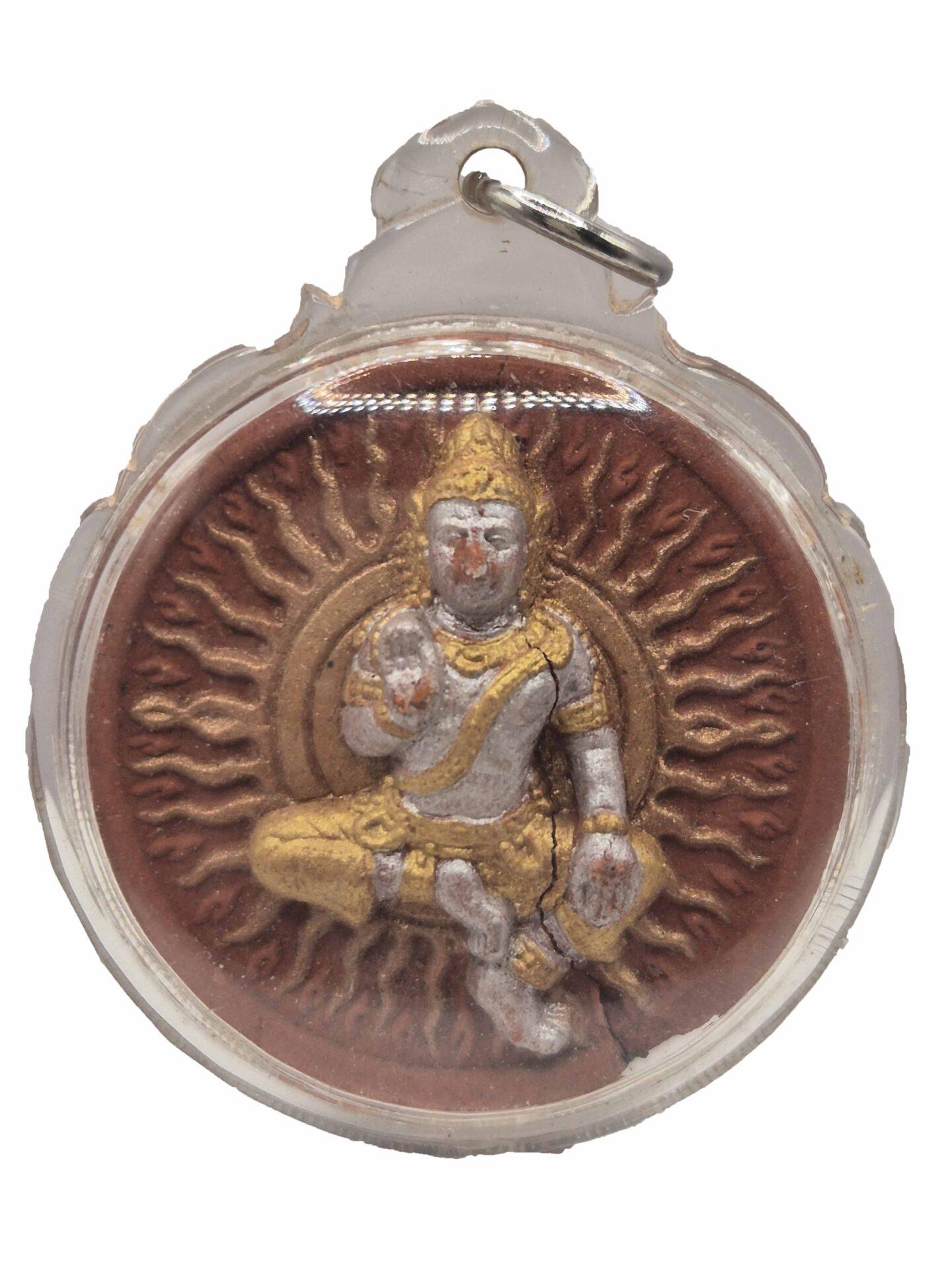 Jatukam Ramathep amulet became extremely popular in the 2006-2007 period. The amulet is named after the two princes, Jatukam and Ramathep, from the Sri Vijaya kingdom. It is a round shape amulet with a 5cm diameter and usually with the image of a Hindu deity. The initial batch of amulets was made in 1987 by Khun Phantharak Rajjadej, a highly respected police Major General that died at the age of 108. The latter was given a Royal Cremation ceremony where the Thai King, Queen, and more than 200 thousand people patronage the funeral.