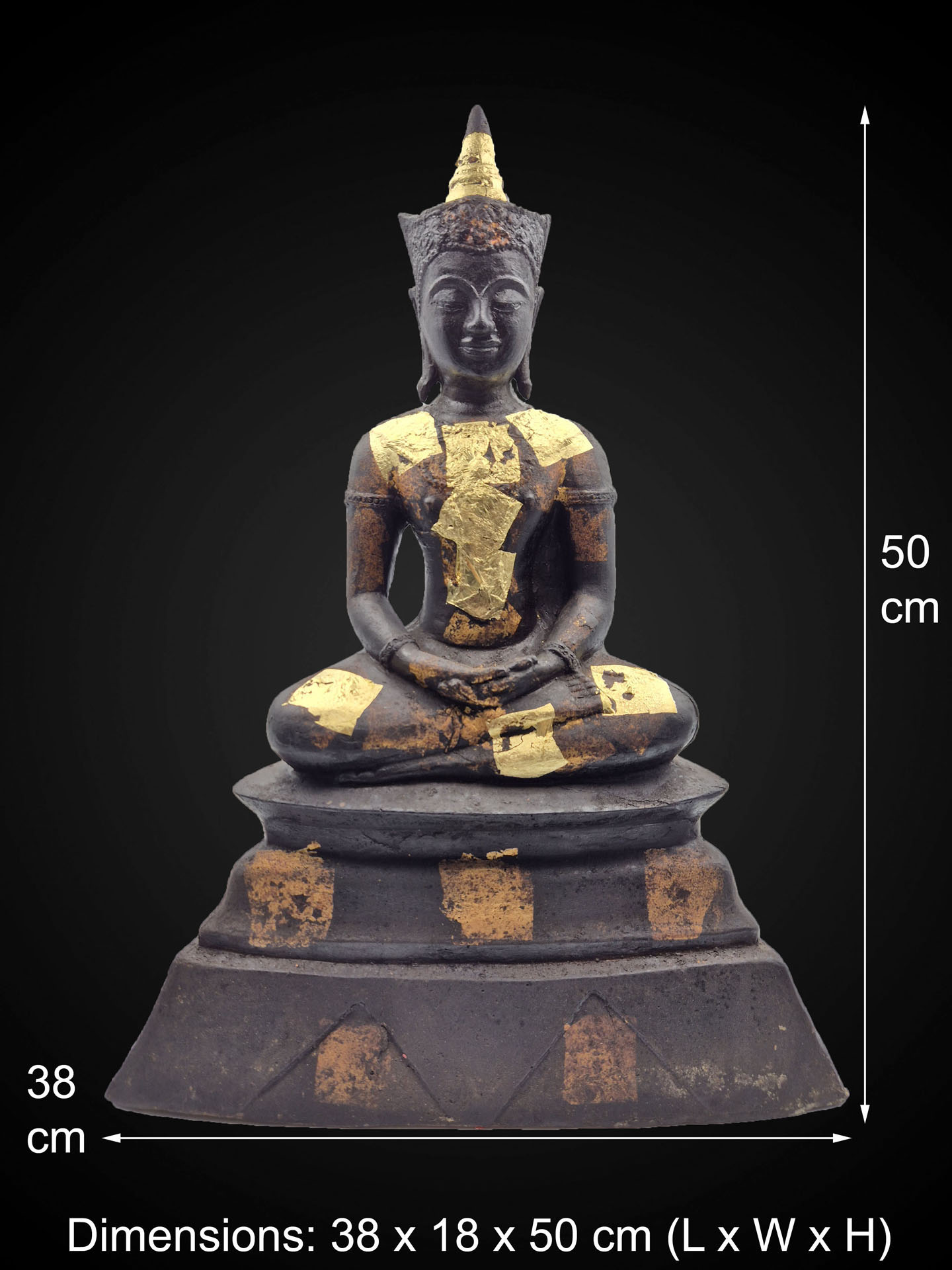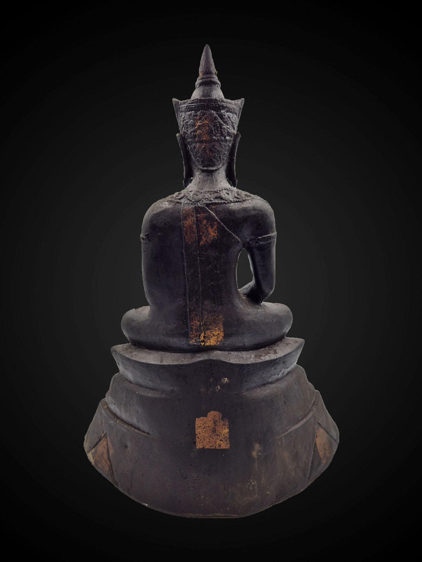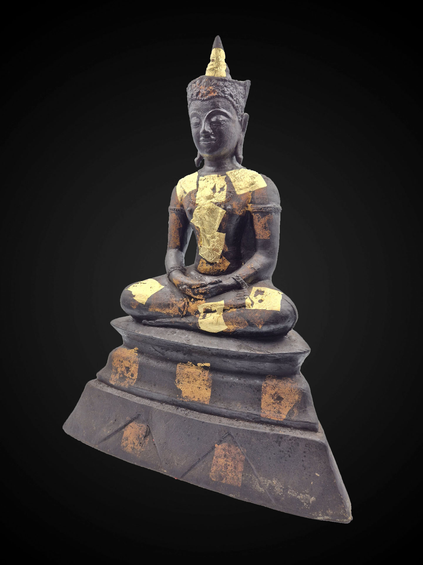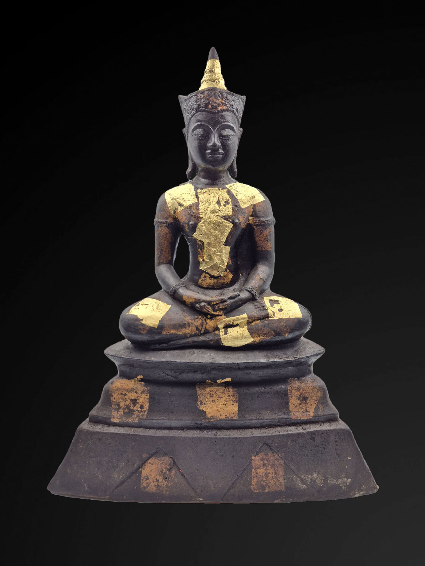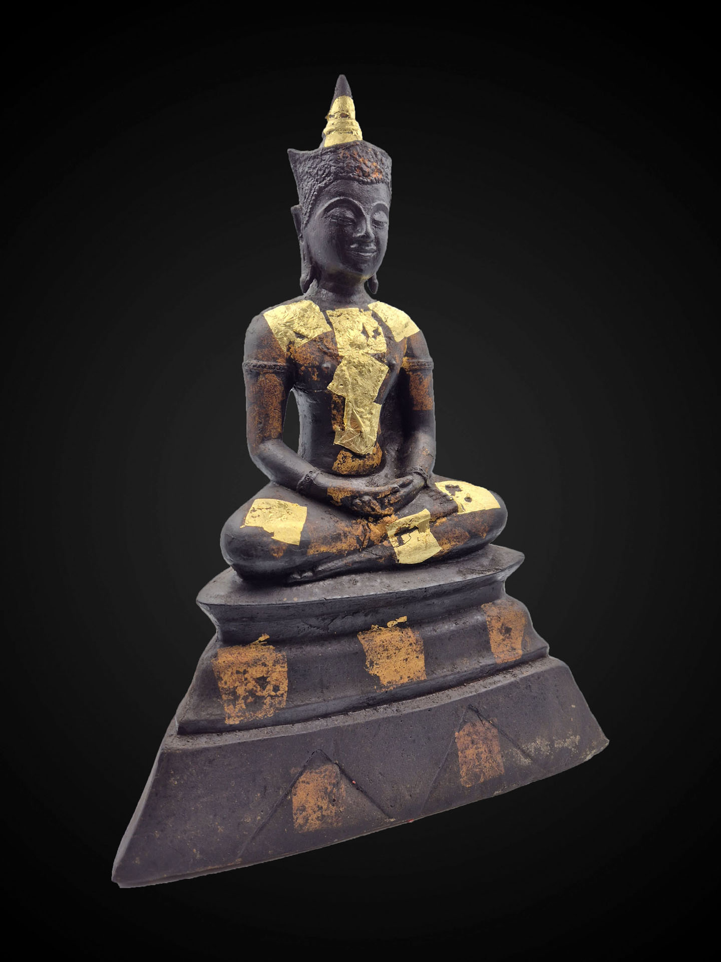 This Khmer-influenced style Phra Ngan is depicted in a seated meditative posture, representing stillness, restraint, and focused inner awareness. The composition reflects a grounded and balanced form commonly associated with Southeast Asian sculptural traditions.