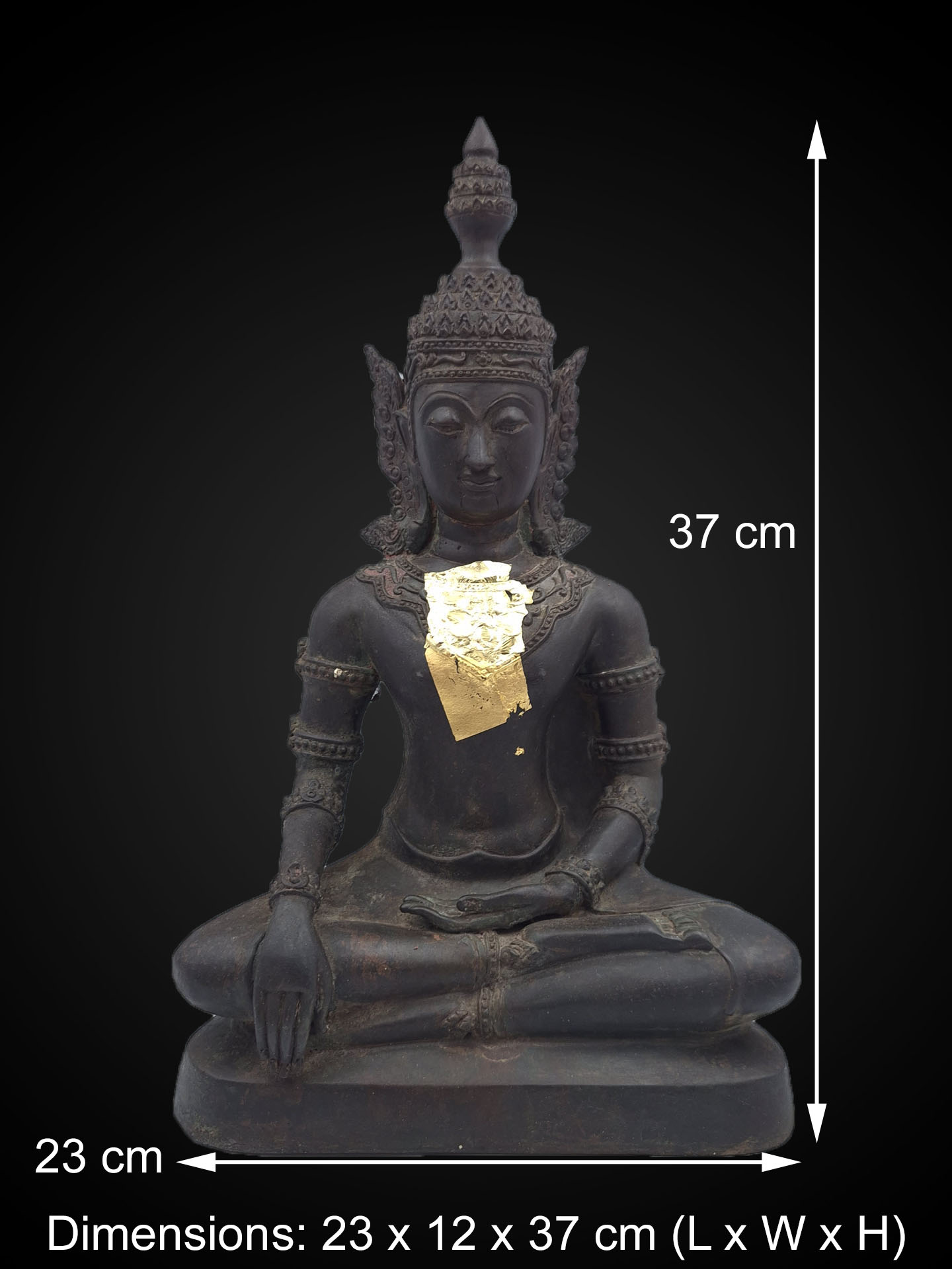With a height of 37 cm, the statue offers a substantial presence suitable for altar placement, meditation spaces, or contemplative display.