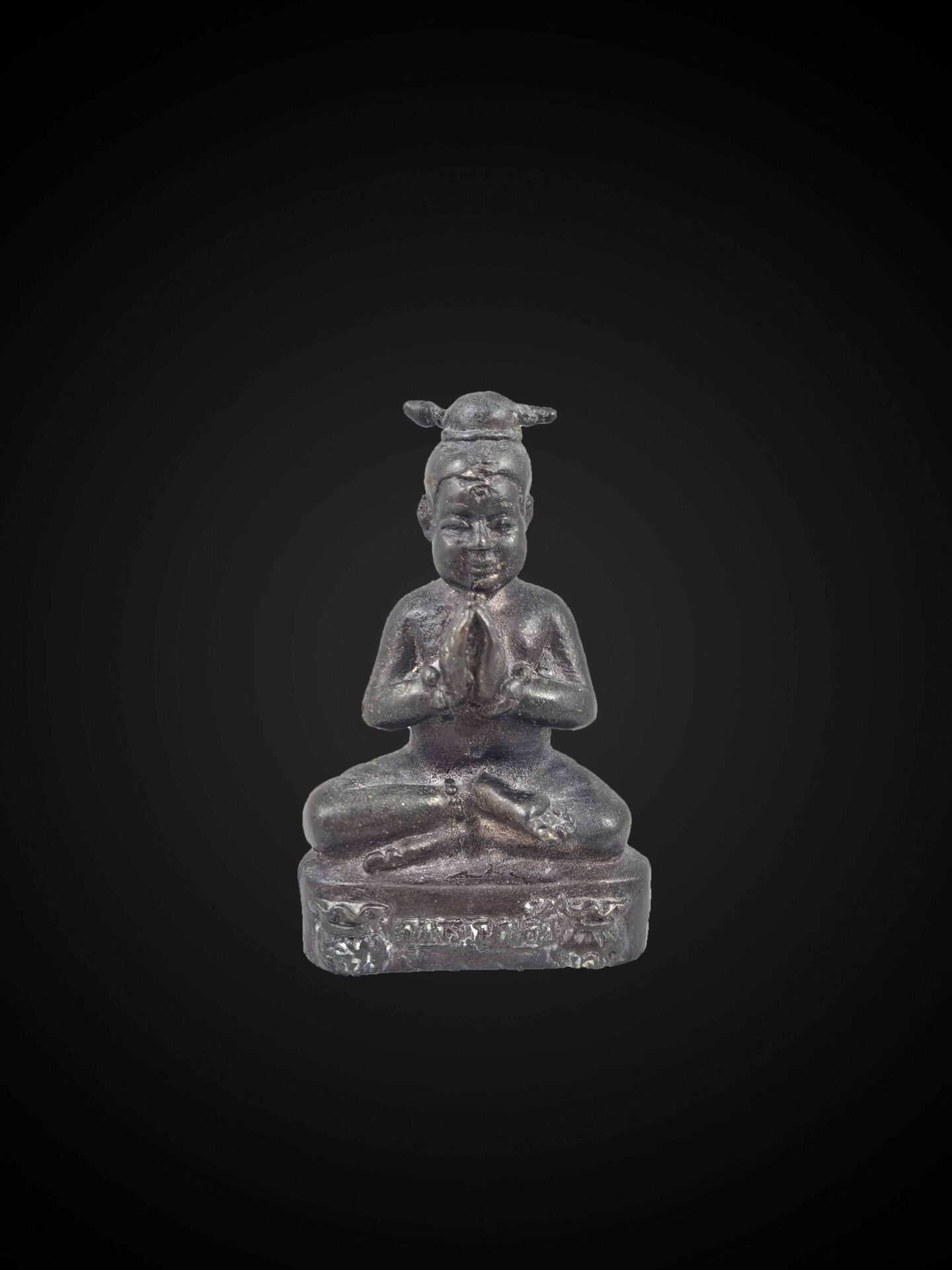 Kuman Thong, translated as “Golden Baby Boy,” is a Thai spiritual amulet believed to house the spirit of a child. Rooted deeply in ancient Thai folklore and animism, it represents a guardian spirit that can bring protection, prosperity, and luck to its owner. Traditionally, the Golden Baby Boy was made from the fetus of a child who died during pregnancy. Through rituals, the spirit of the child would be invoked to reside in the effigy. Today, such practices are illegal and culturally taboo. Modern versions are typically made of metal, wood, or plaster and are not linked with any morbid origins.