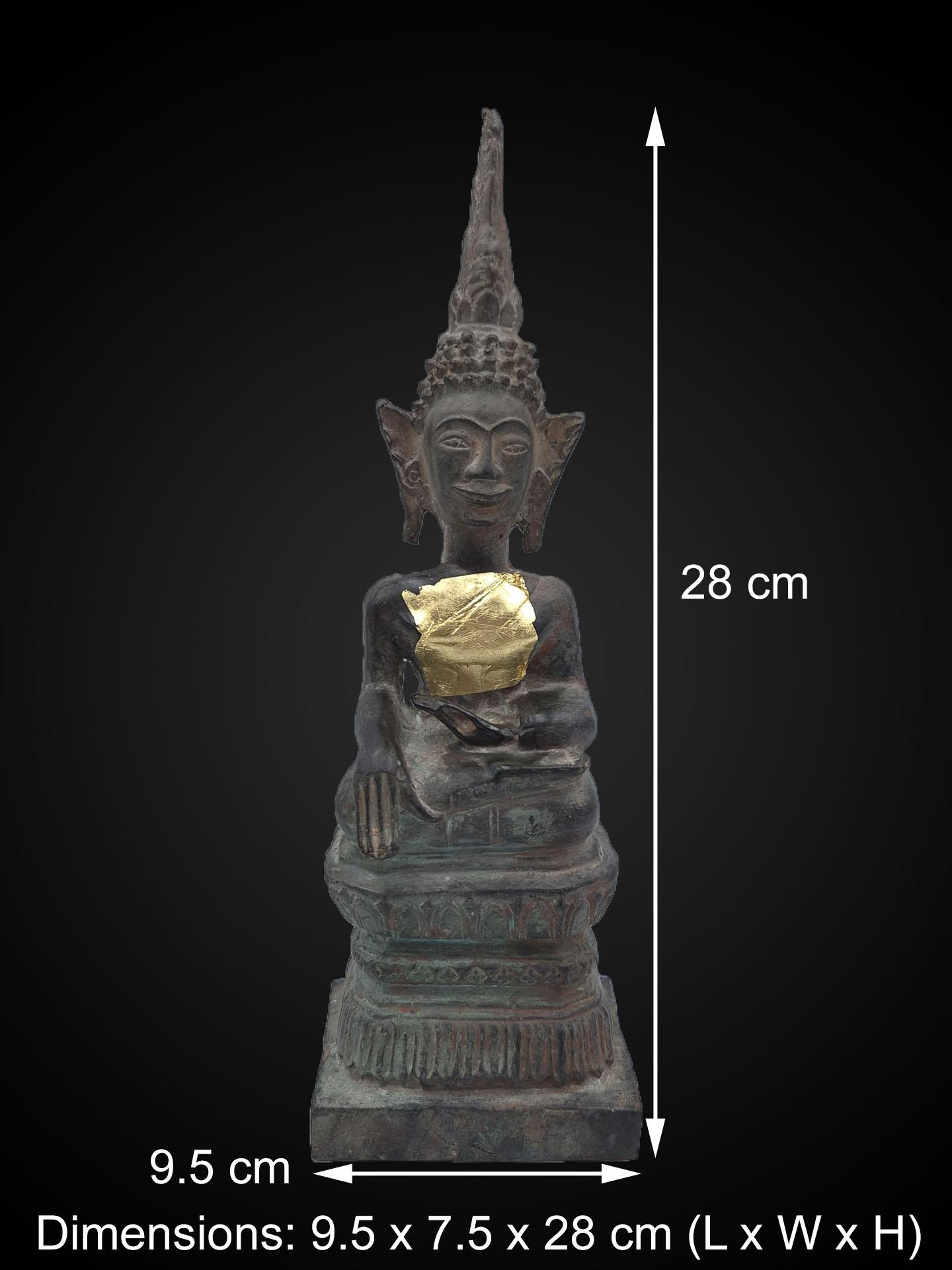 This Lanna style Shakyamuni Buddha is depicted in the Earth-Touching (Bhumisparsha Mudra) posture, representing the moment of enlightenment when the Buddha called upon the earth to witness his triumph over illusion and temptation. The composition reflects the refined proportions and serene spiritual character associated with the northern Thai sculptural tradition.