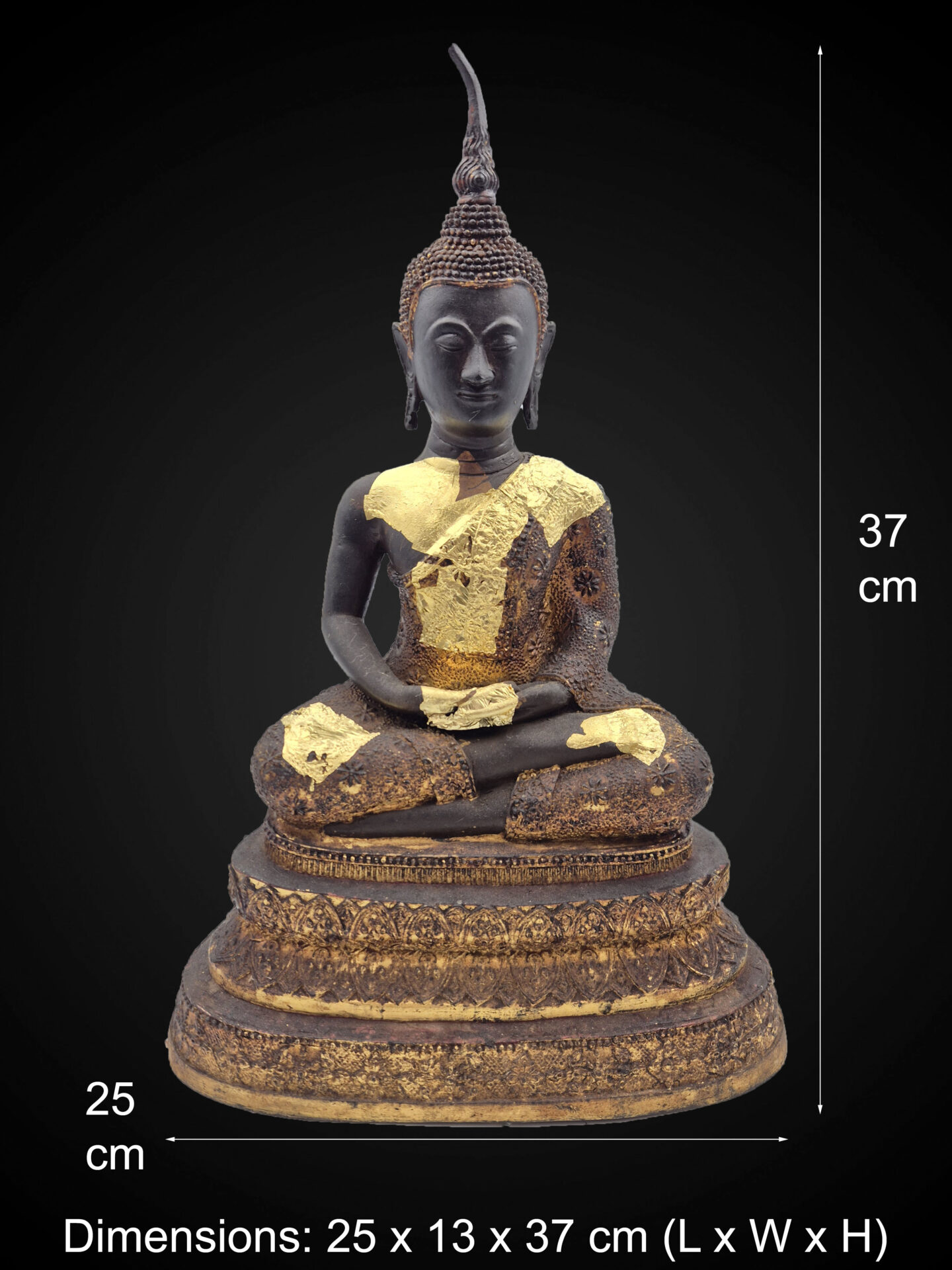 This Rattanakosin style Buddha statue is depicted in the Dhyana Mudra (Meditation posture), representing inner peace, concentration, and spiritual balance.