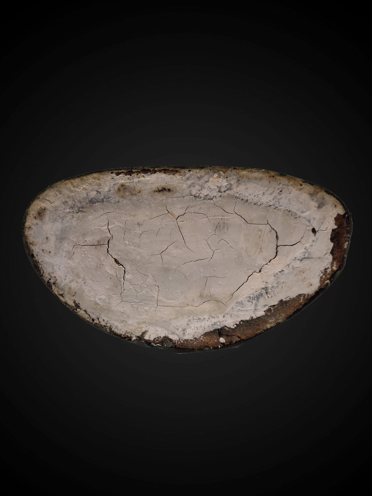 The underside reveals a filled base construction, typical of cast statues, contributing to its substantial weight and stability.